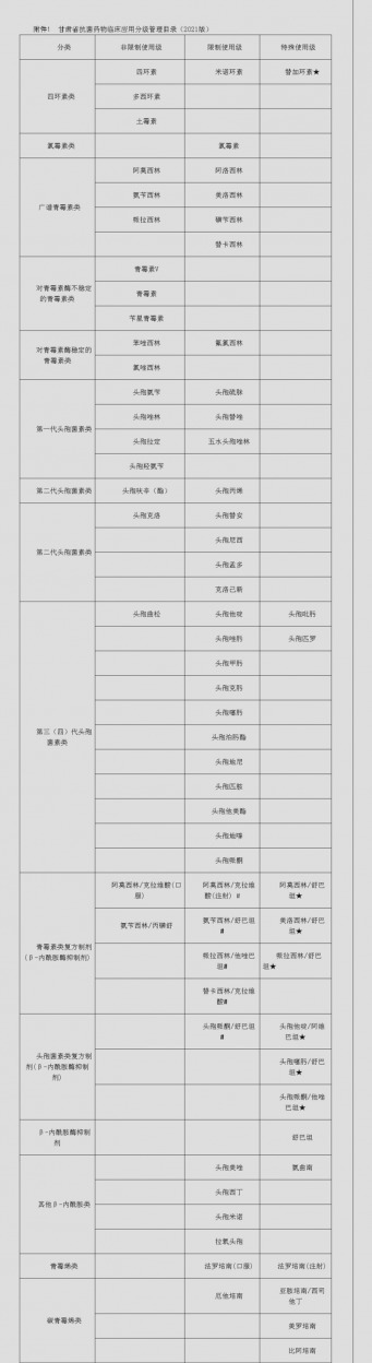 [特别关注] 5月1日起,甘肃施行抗菌药物临床应用分级管理目录 日期:2021-05-07