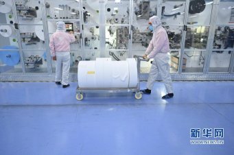 1月27日,在福建泉州石狮一家口罩生产企业的十万级无尘车间,...
