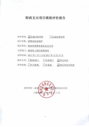 [通知公告] 海南省消费者委员会办公室消费者权益保护项目绩效自评报告 日期:2021-04-16