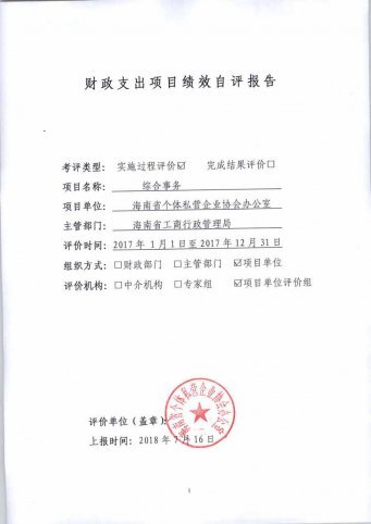 [通知公告] 海南省个体私营企业协会办公室财政支出项目绩效自评报告 日期:2021-04-16
