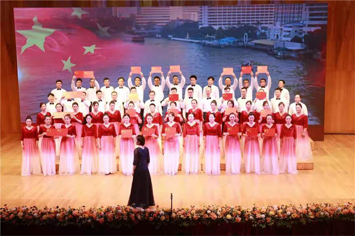 比赛结束后,委领导登上舞台,同观众们一起高唱《没有共产党就没有新中国》,演员和观众们情不自禁站起身,挥舞手中红旗,尽情歌唱,高颂党的恩情,坚定永远跟党走的决心。