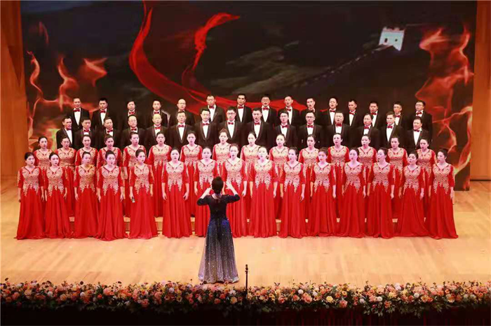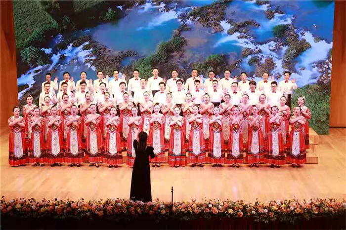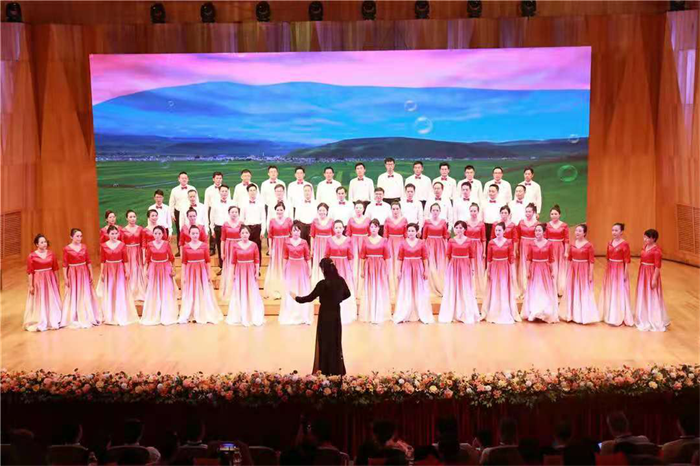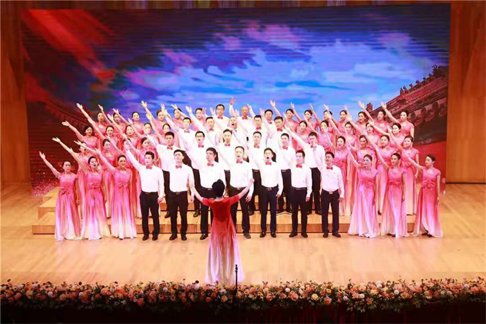 参加活动的委领导与全体演员们合唱《没有共产党就没有新中国》