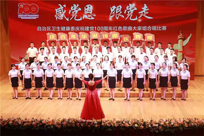 廖品琥强调,全区卫生健康工作者要唱响学党史、感党恩、跟党走的主旋律,在传唱红色歌曲中传承优良革命传统,持续在卫生健康系统营造出解放思想、担当实干、凝心聚力的精气神,为建设新时代中国特色社会主义壮美广西贡献卫生健康力量。