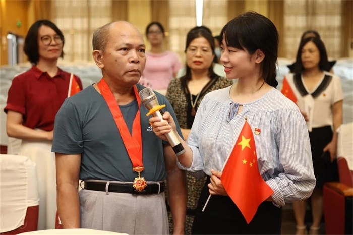 庆祝大会结束时,学校新媒体中心现场对部分老党员、在职党员、干部、教师和学生进行了采访,大家纷纷表达了此时激动的心情和对党、对祖国的无限热爱。学校光荣在党50年的退休干部韦福满眼含泪水:“太激动了!党的百年伟业,都是为了人民,没有中国共产党哪有今天的中国,我虽然退休了,但是为党工作的心永远不会停止。”医学系党总支书记梁友相激动地说:“此时此刻我的心情无比激动,感受到祖国的今天来之不易,多少革命烈士为之付出了热血与生命才换来祖国的强盛。作为教育工作者,我们既要缅怀革命先辈的光辉业绩,传承红色基因,发扬优良传统,更要牢记我们所肩负的历史重任,以实际行动践行初心使命,展现新时代共产党人的责任担当,为祖国培养德智体美劳全面发展、勇于担当时代重任的社会主义建设者和接班人。”更多的同学是以书面的形式表达了自己的深切感受。2020级临床3班的庞字平同学写到:“今天是中国共产党成立一百周年的伟大日子,我观看了庆祝大会直播,听了习近平总书记的讲话之后,深深被触动。我知道中国共产党带领中国从落后走到如今的辉煌有多么不易,也知道老一辈的革命家们为了中华民族伟大复兴不惜抛头颅洒热血,正是因为有中国共产党的领导还有老一辈革命家们的浴血奋战,才会有我们今天盛世太平的生活,但是我们不能沉溺于当前的安逸,作为青少年,我们应当担当起责任,正所谓‘少年强则国强’,努力学习科学文化知识,学习党的先进思想,努力赶上老一辈革命家的脚步,为我们亲爱的祖国贡献自己的力量!”