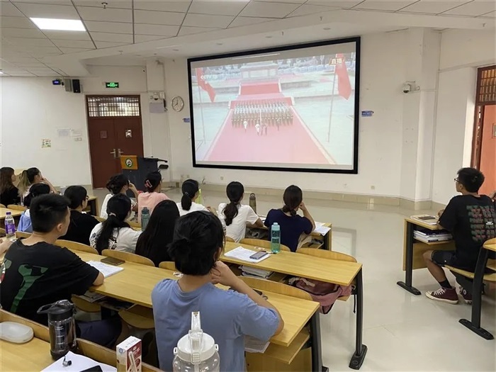 有课的师生也利用课间时间在教室自行收听收看了庆祝大会的现场直播。