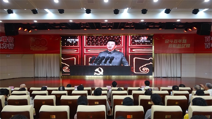 上午8时,全体人员观看庆祝中国共产党成立100周年大会,认真聆听学习习近平总书记重要讲话精神。见证中华民族从站起来、富起来到强起来的历史性飞跃,进一步激励全体党员、全体干部职工更加充满信心朝着建设社会主义现代化国家目标前进,更加坚定走中国特色社会主义道路的决心,回顾历史、不忘初心、砥砺前行,不负时代、不负韶华,以更加饱满的热情、更加昂扬的斗志,积极投身实现中华民族伟大复兴中国梦的伟大实践中,投身建设世界一流药园的新征程中。