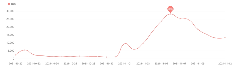 监测期内,共收集有关“价格争议”类负面信息919382条,日均在38308条左右,信息量分布呈现集中趋势,11月1日舆情信息量最高,为143984条。