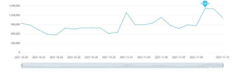 在10月20日至11月12日共计24天监测期内,共收集“双11”相关“消费维权”类信息21353081条,日均信息量约89万条。监测期间,“消费维权”信息虽呈现出曲线波动走势,但每日相关舆情数量较为平稳,11月1日、10日和11日信息量较多,10日最多为1416790条。