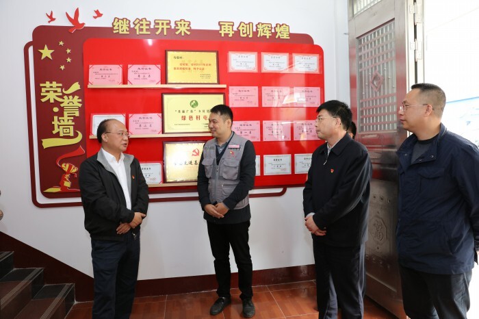 廖品琥书记、主任(左一)在马堤村党群服务中心调研