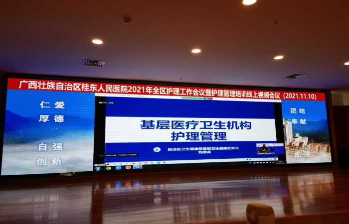 2021年11月10日,自治区卫生健康委在南宁成功举办2021年全区护理工作会议暨护理管理培训班。会议采用线上+线下的方式进行,委机关相关处室、各市卫生健康委医政科负责人,全区三级公立医疗机构分管副院长或护理部主任,广西护理质量控制中心全体成员和各市护理质量控制中心代表参加会议。
